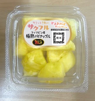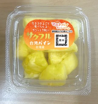 キャンペーン二次元コードシール貼付の台湾産・フィリピン産ブロックパイナップル