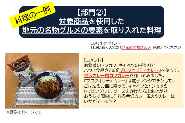 (2)対象商品と地元の名物グルメの要素を取り入れた料理 (例:金沢カレー風カツカレー)