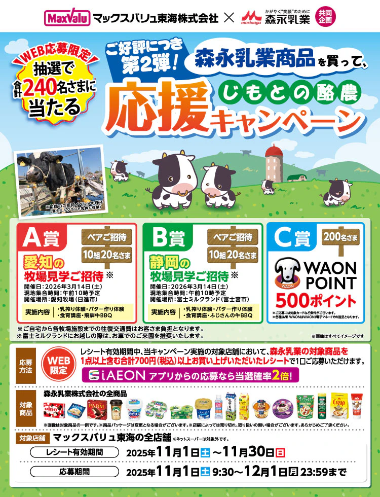 マックスバリュ東海×森永乳業共同企画 「森永乳業商品を買って、じもとの酪農応援キャンペーン」事務局