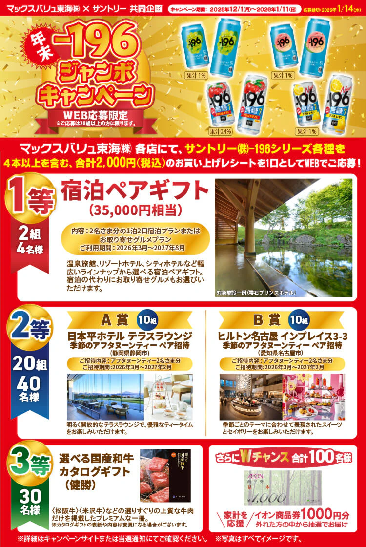 マックスバリュ東海(株)×サントリー(株)共同企画 「年末-196ジャンボキャンペーン」事務局