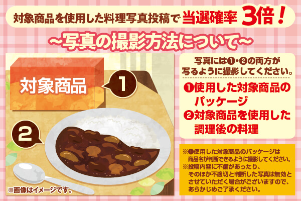 ※条件を満たした料理写真の投稿で自動で当選確率が3倍になります。