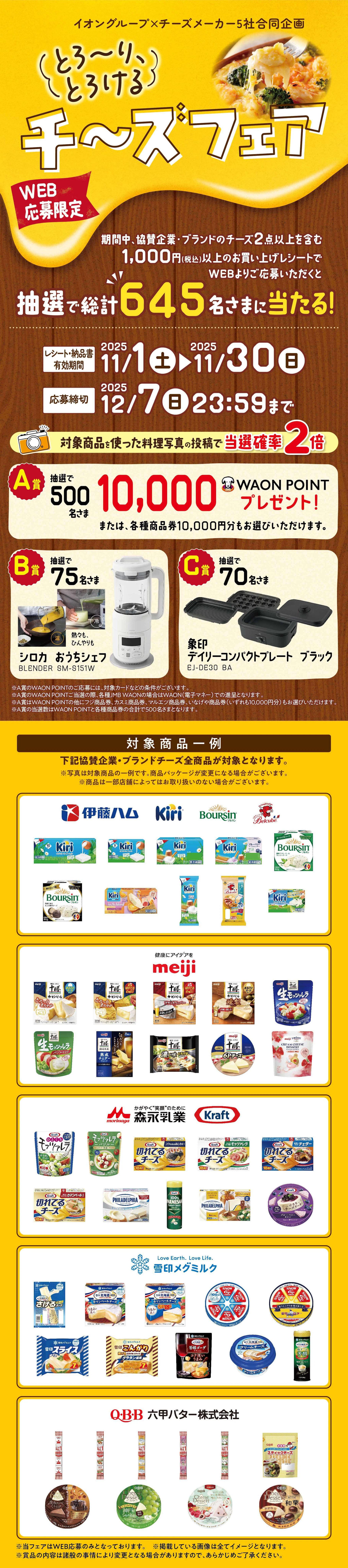 厳正なる抽選のうえ、A賞①の10,000WAON POINTは2026年1月下旬頃からのポイントの進呈をもって発表とかえさせていただきます。