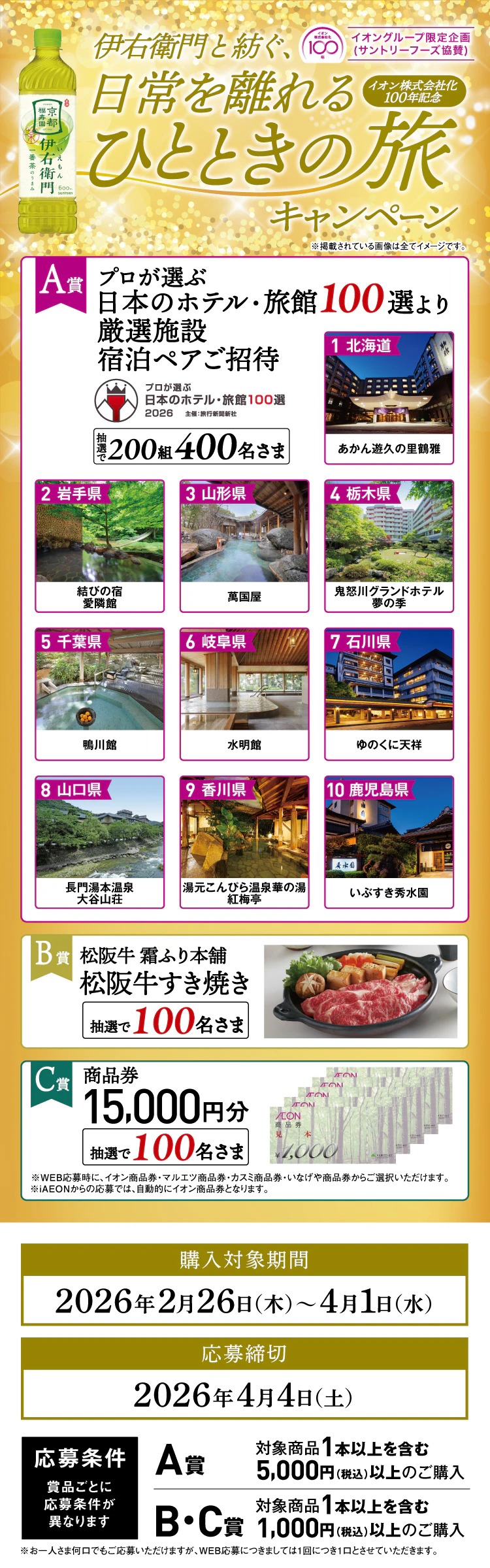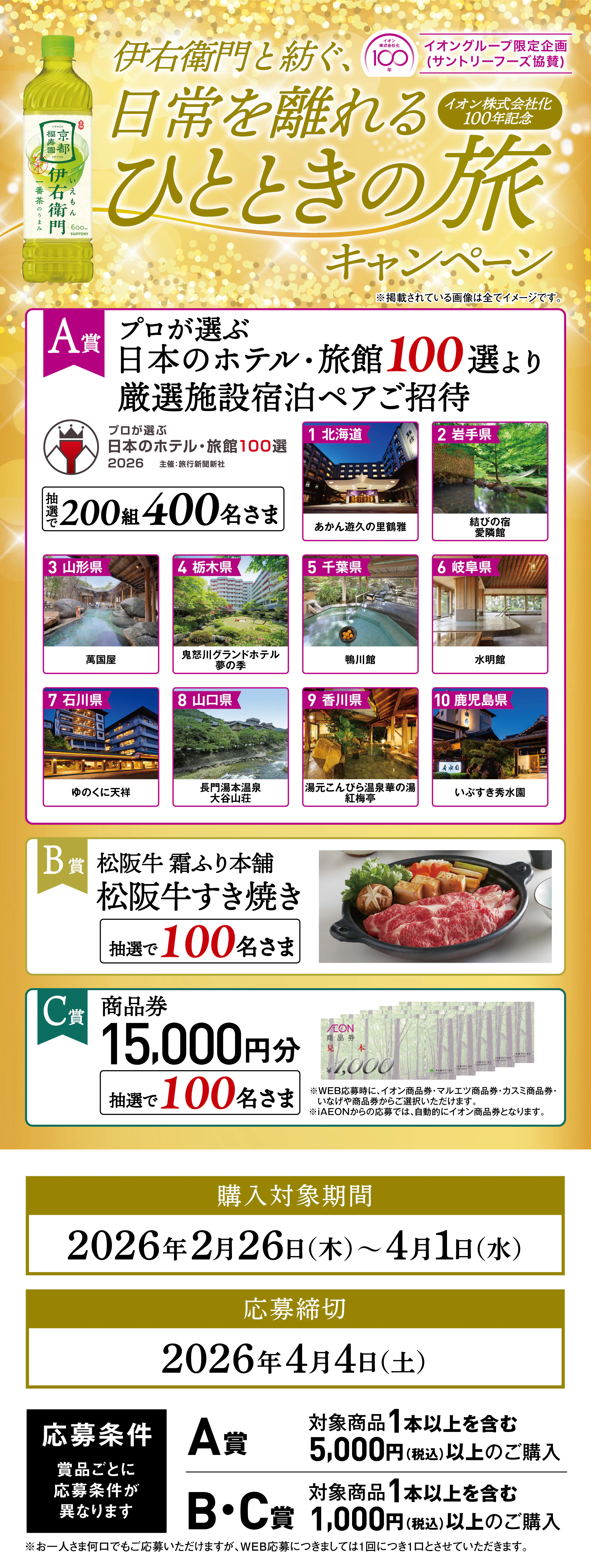 【全国エリア】イオングループ×サントリーフーズ共同企画 伊右衛門と紡ぐ、日常を離れるひとときの旅キャンペーン