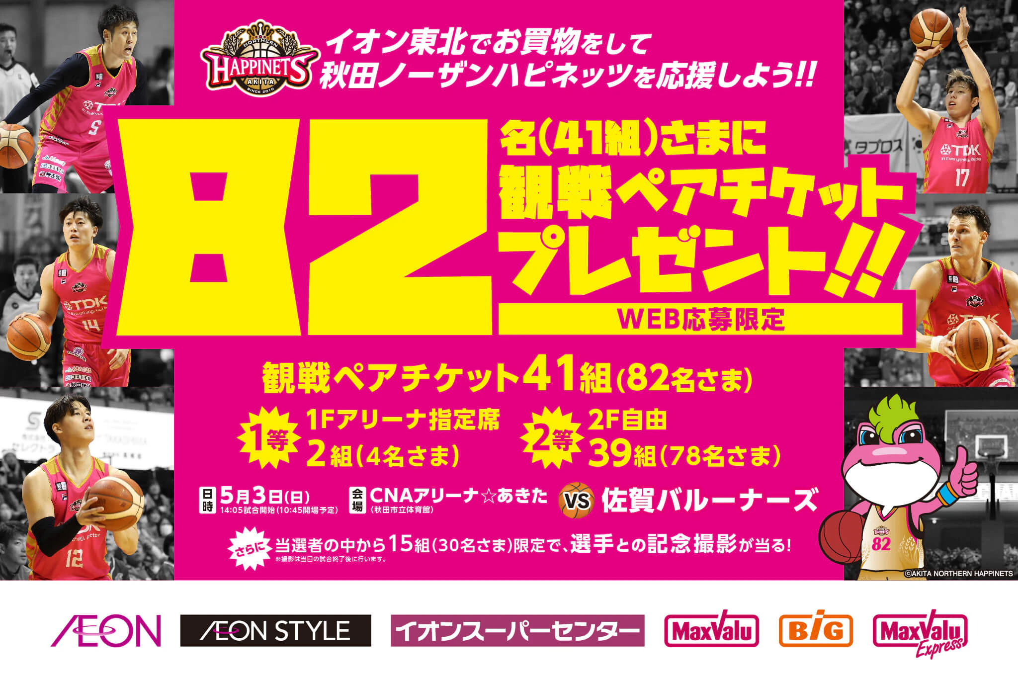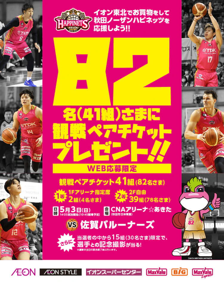 【東北エリア】イオン東北でお買い物をして 秋田ノーザンハピネッツを応援しよう!!