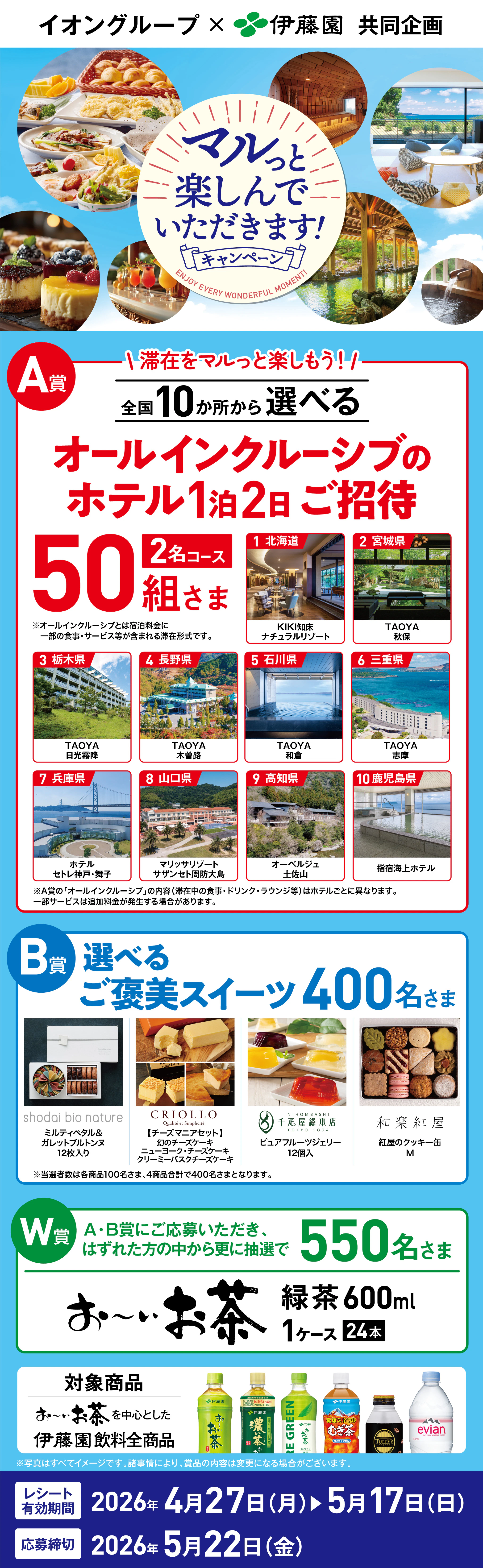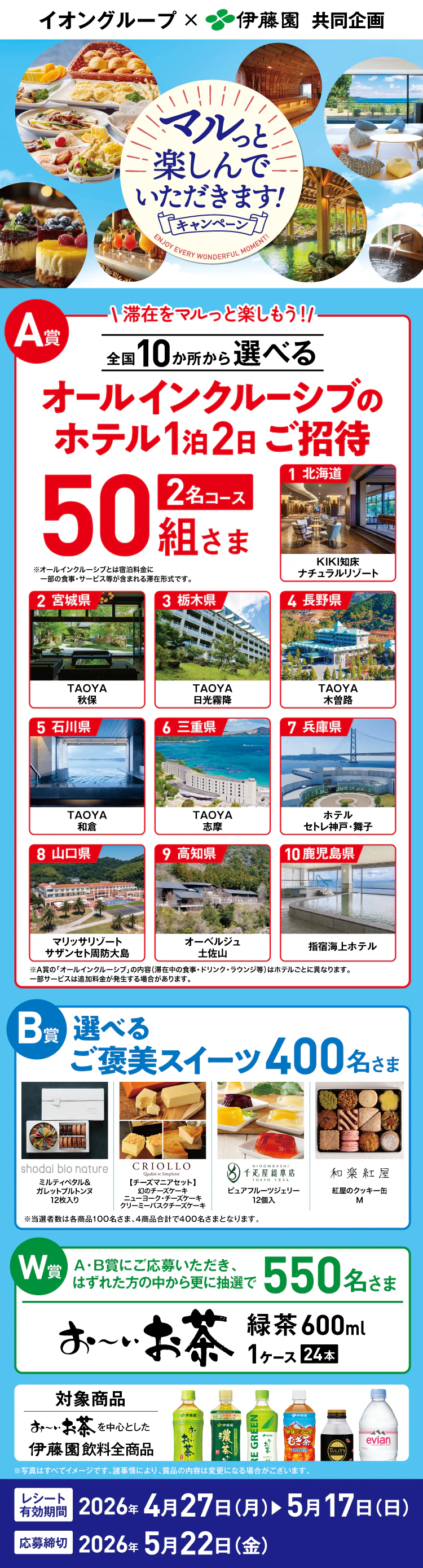 ・お客さまのご旅行の安全かつ円滑な実施が不可能な場合、賞品や招待期間を変更する場合がございます。