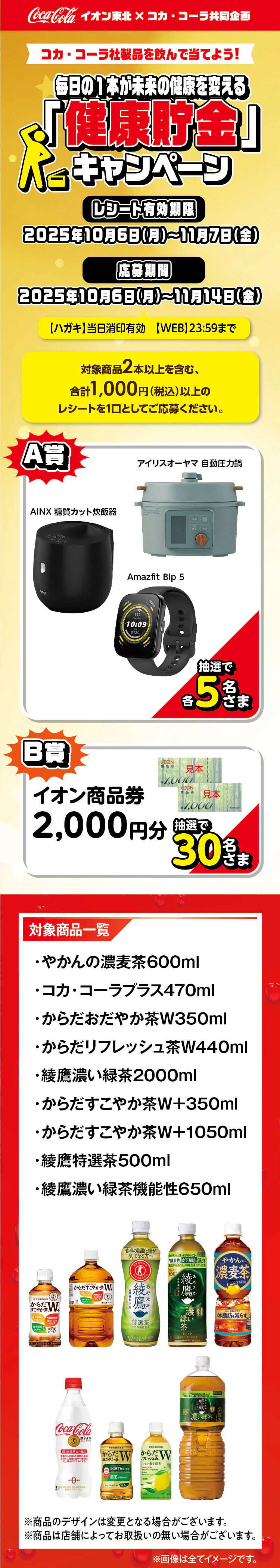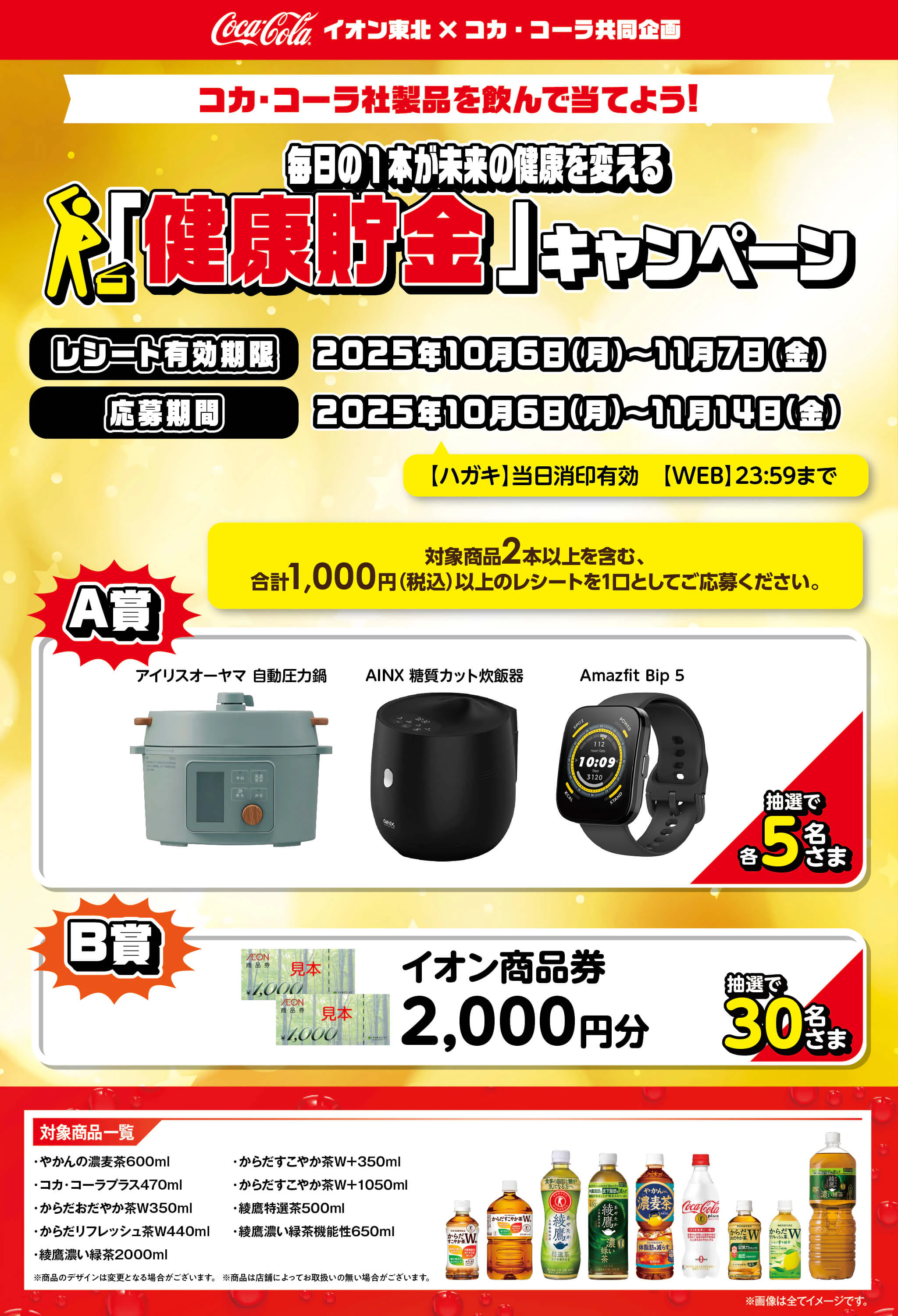 【東北エリア】イオン東北×コカ・コーラ共同企画 コカ・コーラ社製品を飲んで当てよう!毎日の1本が未来を変える「健康貯金」キャンペーン