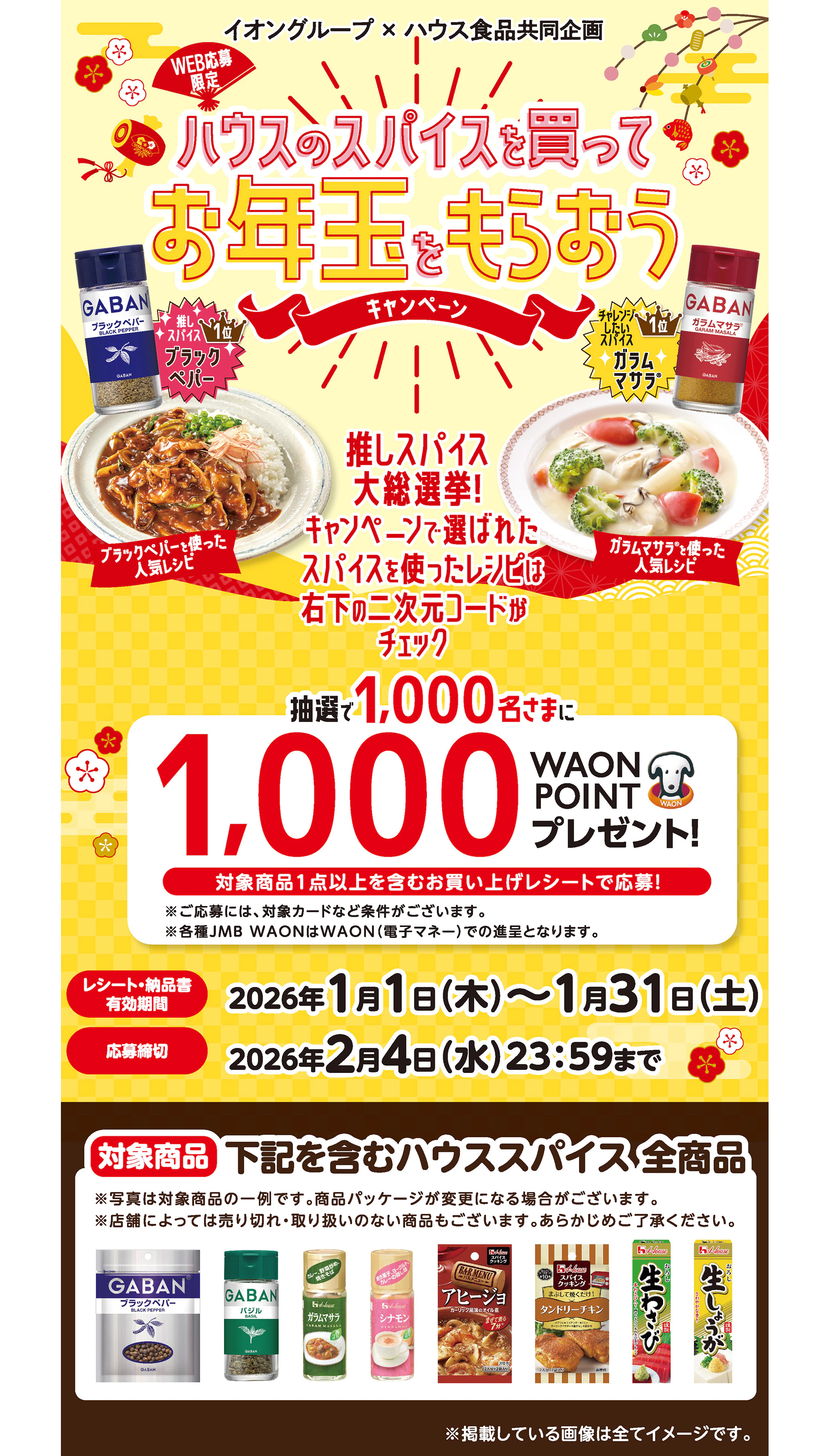 ※お客さまのWAON POINT番号やWAON番号が不明などの理由によりポイントの進呈ができない場合、ご応募が無効となりますのでご注意ください。