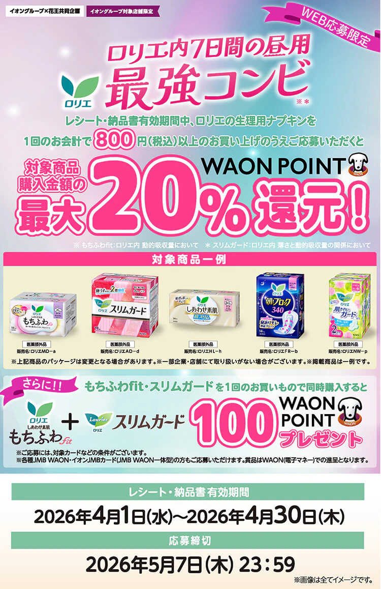 ロリエ内7日間の昼用最強コンビ 最大20%WAON POINT還元!キャンペーン事務局