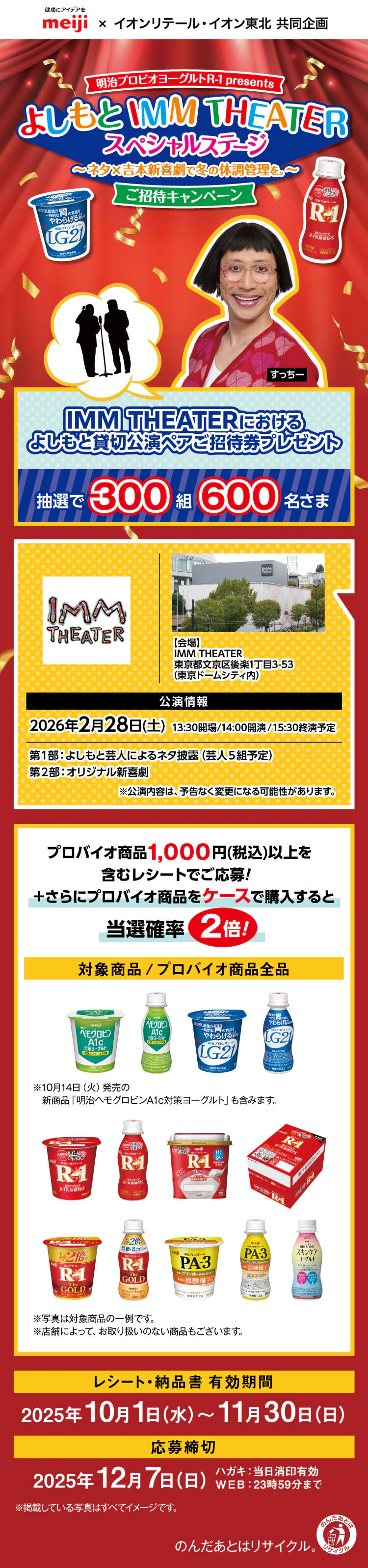 ※ネットスーパー・イオンショップでお買い上げのお客さまは、レシートの代わりに領収書兼納品明細書の原本にてご応募いただけます。その際は必要事項を記入したハガキと納品書を封筒に入れてご応募ください。